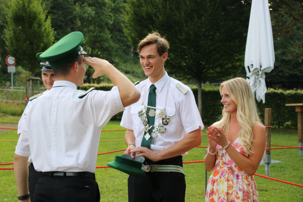 Einen weiteren Tagesordnungspunkt bildete wie immer die Ehrung zum Pokalschießen der Königskompanie. In diesem Jahr durchgeführt durch den Sprecher der Königskompanie Bernd Gabriel. Sieger sowohl beim Königspokalschießen als auch bei der Ehrenscheibe wurde Christian Rinscheid. Ein Novum in der Geschichte der Königskompanie, dass sich ein ehemaliger König gleich beide Titel sichern konnte.